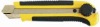 Cutter with ergonomic handgrip made of plastic. Steel blade sliding mechanism. Safety device for blade lock.